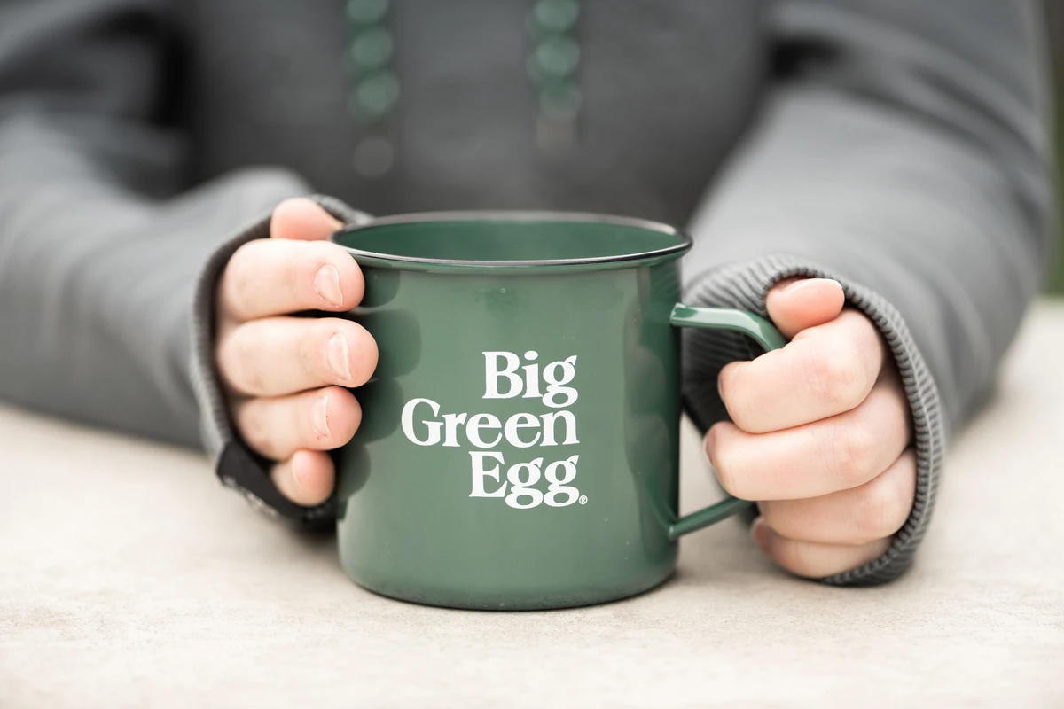 Mit dem Big Green Egg Emaillebecher lässt es sich perfekt in den Tag starten – auch wenn sie mal früh aufstehen müssen, um ein Low-and-Slow Gericht in ihrem EGG zu beginnen.