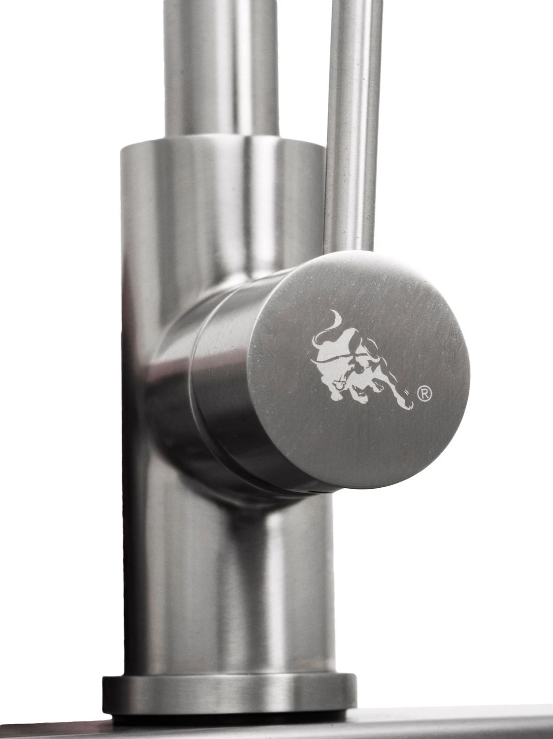 Das Bull Einbau – Spülbecken Größe M wird inkl. Wasserhahn mit Kalt-/Warmwasserranschluss geliefert.