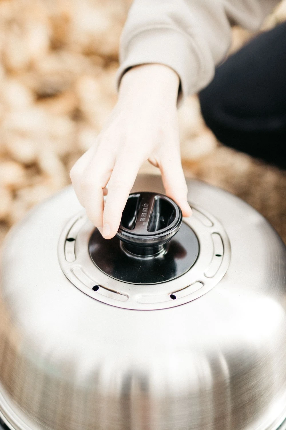 Der Deckel des Cobb PREMIER AIR DELUXE verspricht durch eine spezielle Luftregulierung eine einfache und präzise Temperatursteuerung. Mithilfe einer Drehscheibe lassen sich über den Griff am Deckel die Lüftungsschlitze öffnen und schließen, um so die Temperatur optimal zu regulieren.