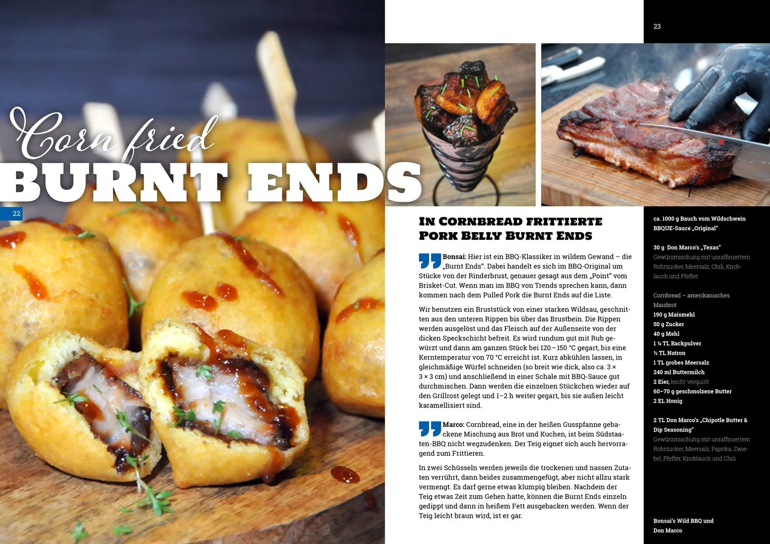 Die Rezepte werden hier durch typische BBQ-Gerichte inspiriert, wie etwa Pulled Chicken Pita oder die Klassiker neu inspiriert wie z.B. Wildes Pastrami, Dammwild-Fleischkäse oder das Karussellfleisch vom Weidelamm.