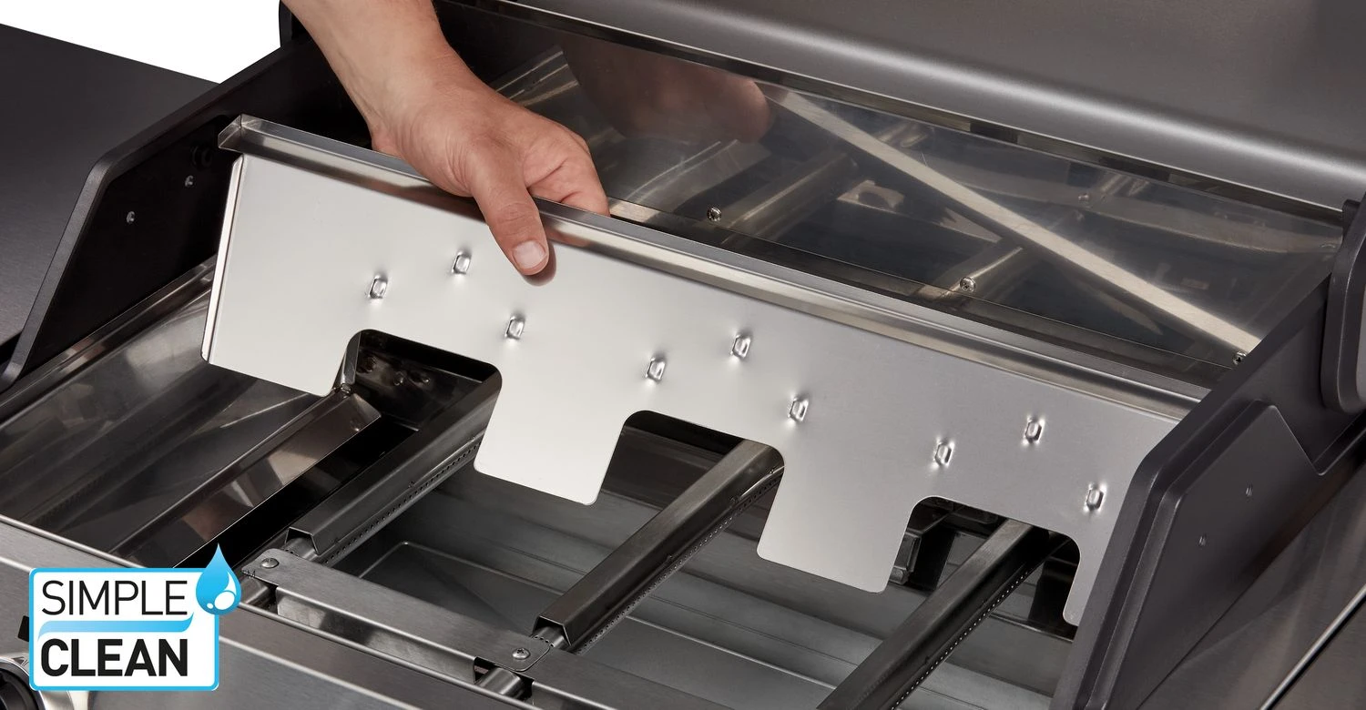 Die normalerweise ersten Verschleißteile, die Flammenschutzbleche und die von hinten entnehmbare Fettwanne, sind ebenso aus Edelstahl gefertigt und können sogar in der Spülmaschine gereinigt werden.