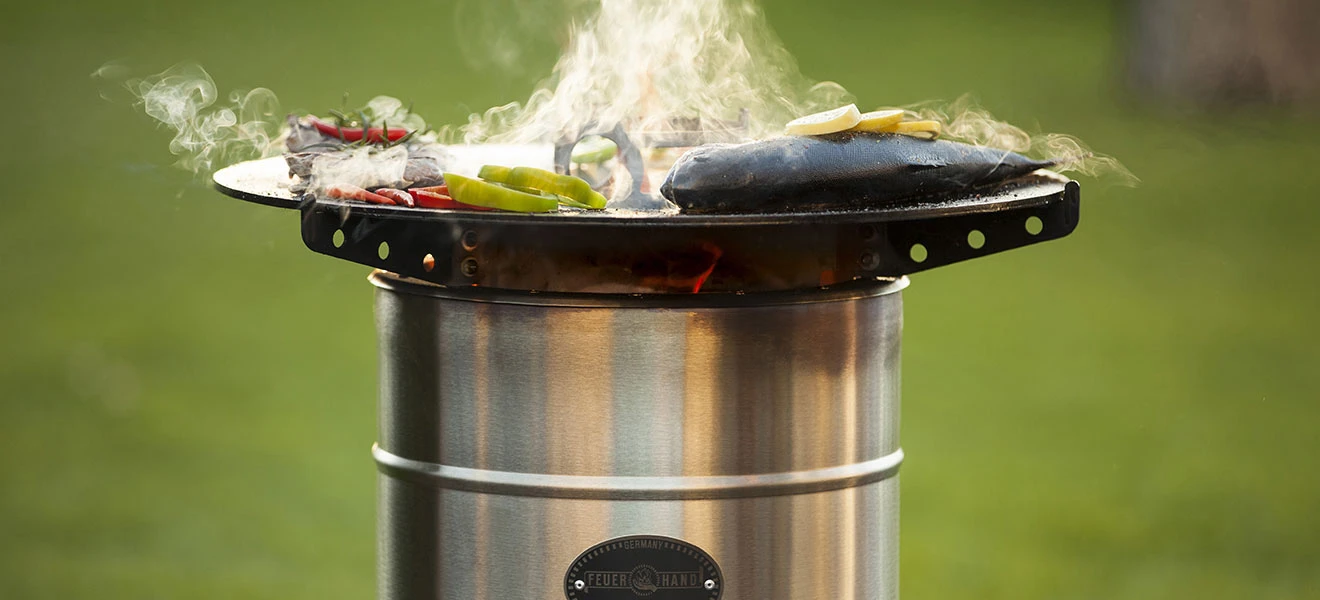 Mit der Feuerhand Pyron Plate verwandeln Sie die Pyron Feuertonne in eine vollwertige Koch- und Grillstation.