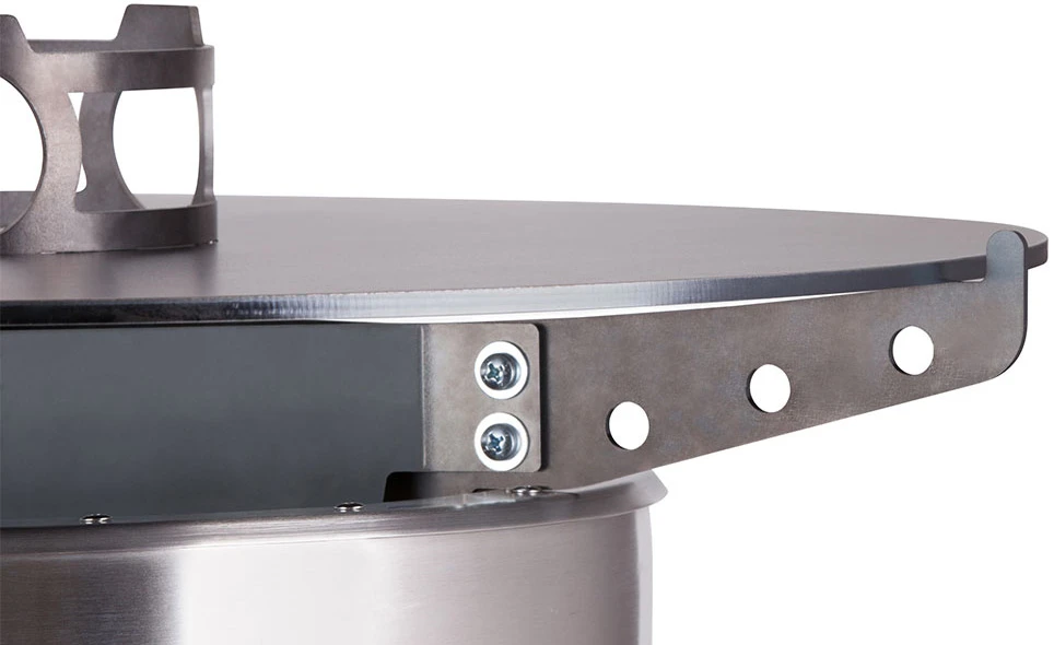 Der mittig platzierte Kochaufsatz dient als stabile Abstellmöglichkeit für Töpfe, Kessel und Kannen. So wird die gesamte aufsteigende Hitze des Pyron effektiv genutzt.