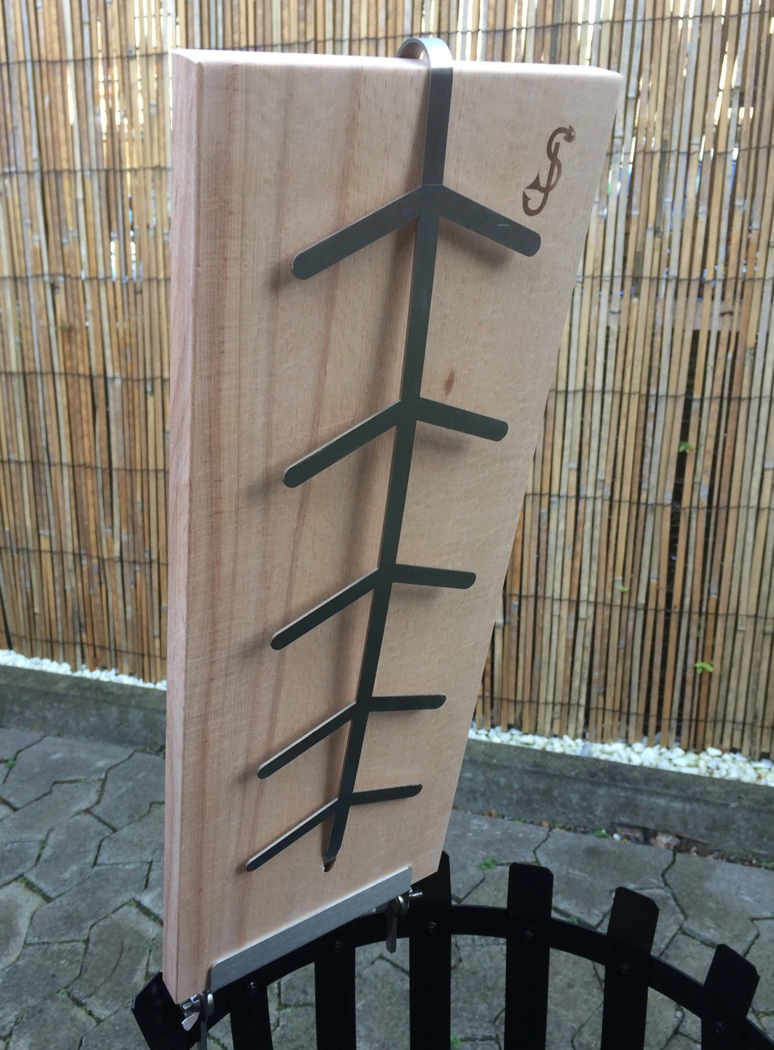 Flammlachsbrett inkl. Gräte, Halterung und allen benötigten Schrauben.