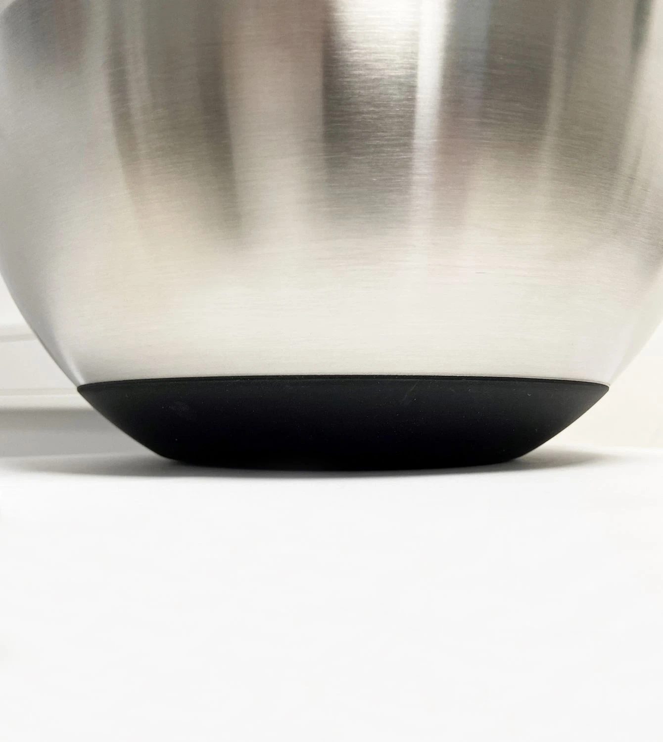 Besonders beim Vorbereiten von Kuchenteig, Brotteig oder Keksteig ist die große Edelstahlschüssel die perfekte Rührschüssel. Dank des robusten Edelstahls hält sie auch dem Handmixer problemlos stand. Der Silikon-Fuß hält die Rührschüssel dabei an Ort und Stelle.