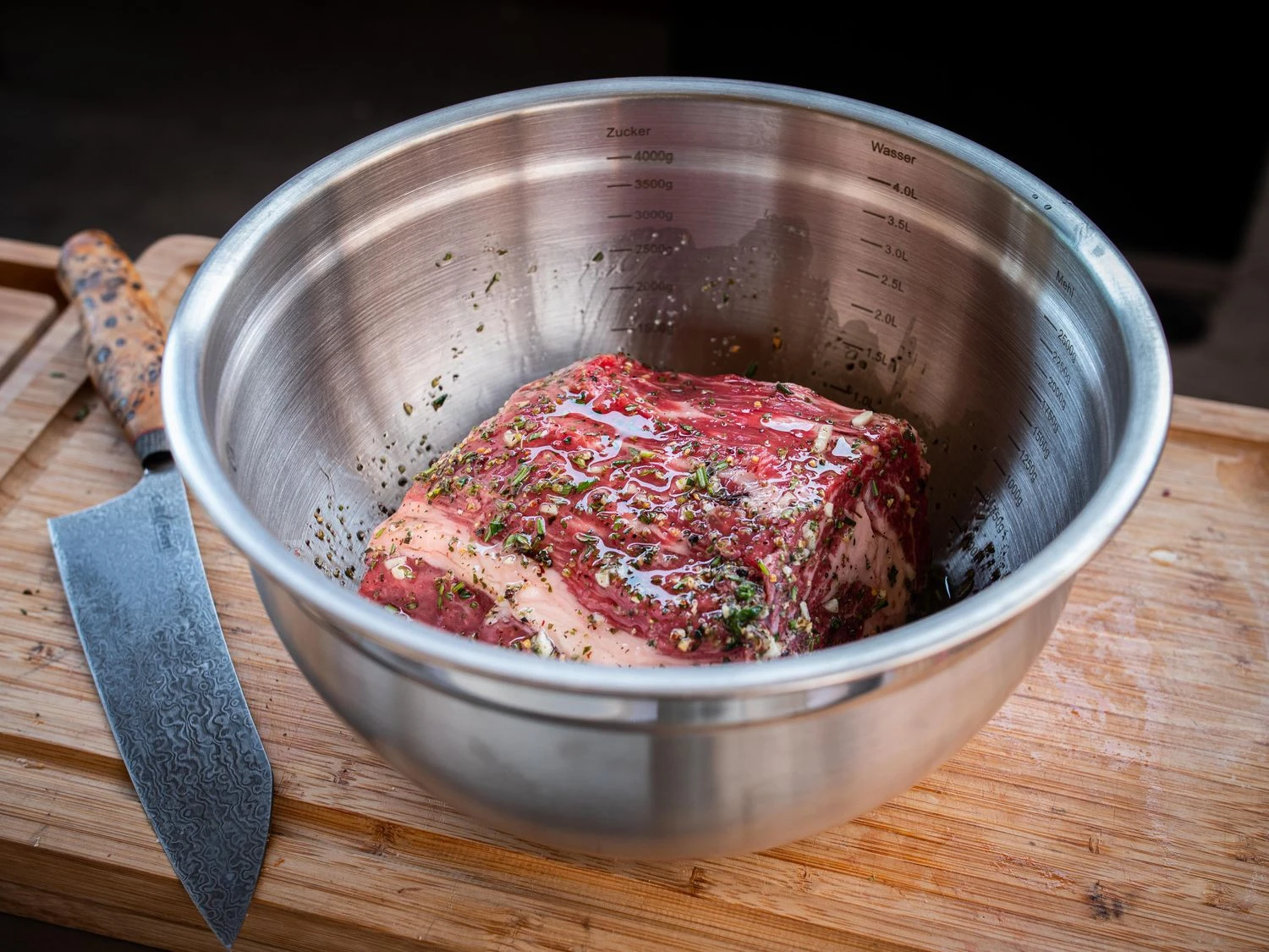 Durch das hygienische Material eignen sich die BBQ Schüsseln perfekt zum Marinieren von Fleisch und Gemüse. Mit dem luftdicht schließendem Glasdeckel mit Silikondichtung wird die Edelstahlschüssel einfach in den Kühlschrank gestellt und das Fleisch oder Gemüse kann unter idealen Voraussetzungen in der Marinade ziehen.