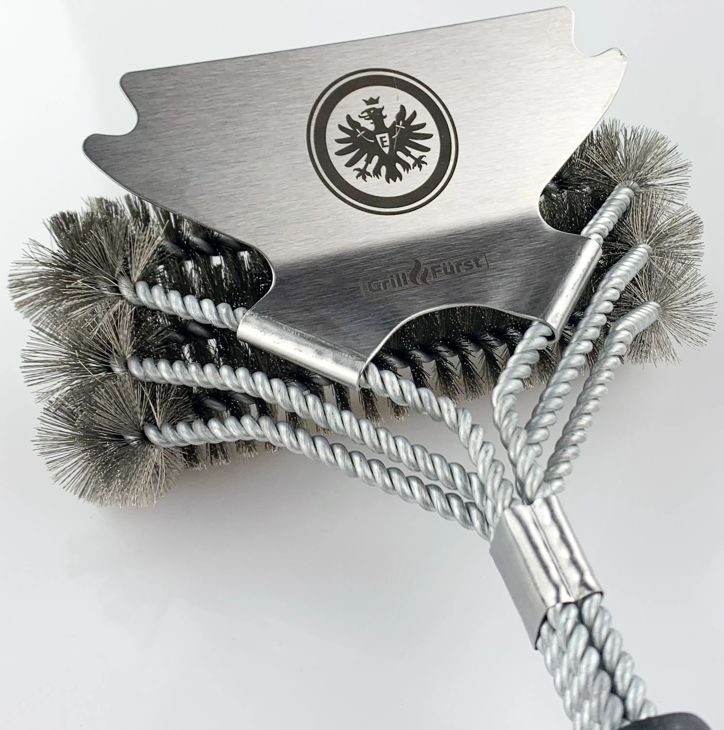 | Bezeichnung: | Grillfürst Premium Grillbürste breit, Edelstahl, mit Dreifachkopf und Schaber – Eintracht Edition |