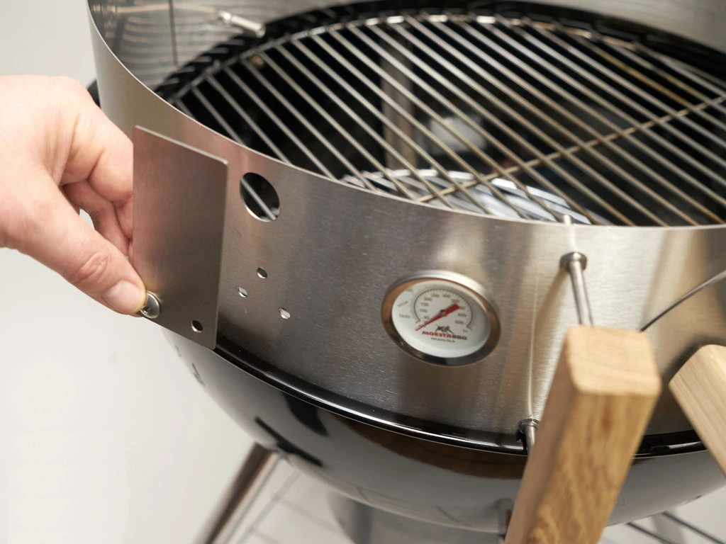Mit den beiden Teilen werden die Löcher am PizzaRing, welche zur Montage des Drehspießes gedacht sind, verschlossen. Der Garraum kann nun als Smoker mit 2 Garebenen verwendet werden.