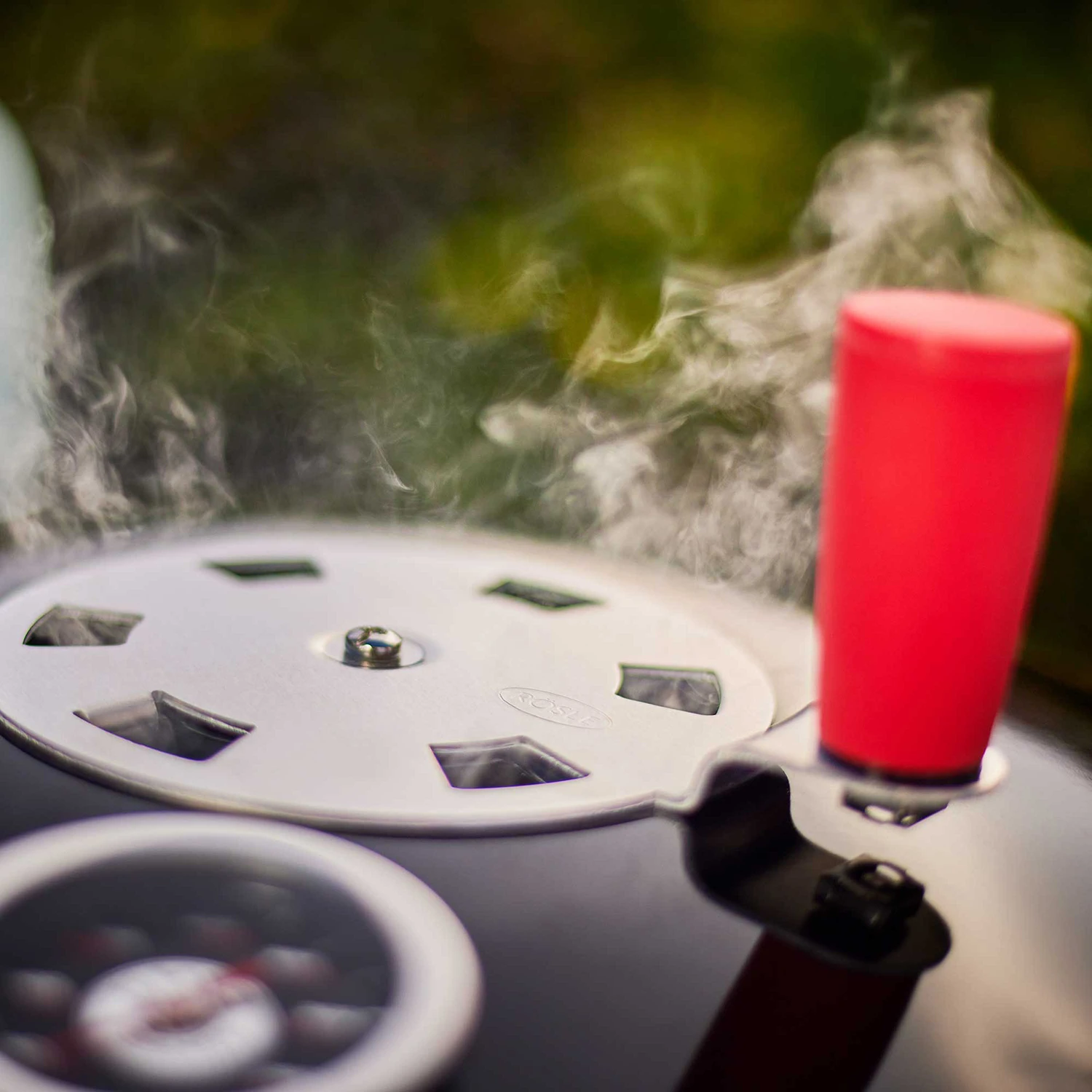 Der hohe Deckel bietet einen großen Garraum und Platz für Zubehör wie Rippchenhalter oder Hähnchenhalter um Beer-Can-Chicken zuzubereiten. Mit dem eingebauten großen Thermometer inkl. FC Bayern Logo können Sie so auch die Innenraumtemperatur einfach kontrollieren.
