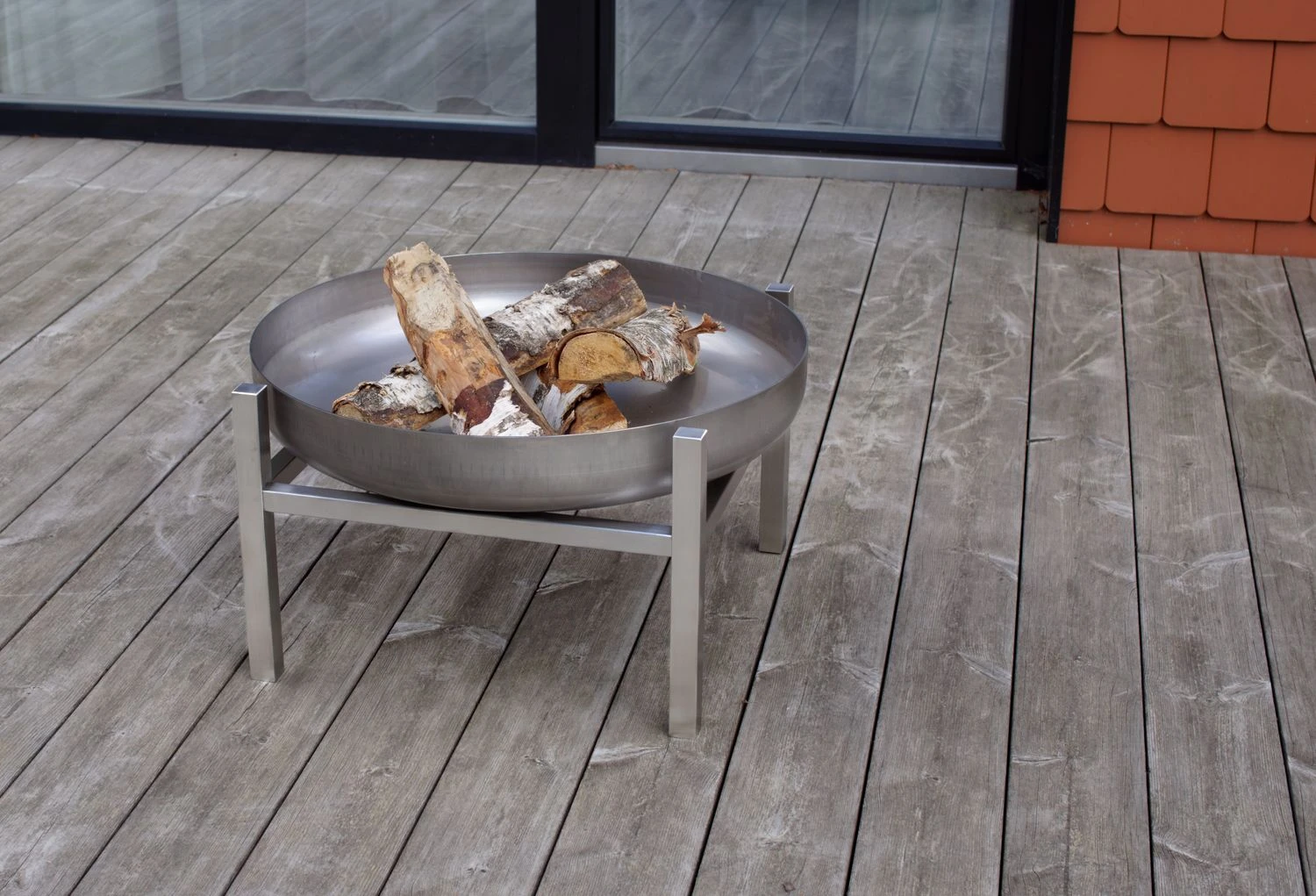 Die SvenskaV Feuerschale ist aus besonders dickem Edelstahl gefertigt, wodurch sich eine besonders lange Nutzungsdauer ergibt. Nicht nur befeuert kann sich die elegante Feuerstelle sehen lassen. Auch ohne Lagerfeueratmosphäre setzt die Feuerschale aus Edelstahl ein Highlight in Ihrem Garten oder auf der Terrasse.