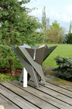 Der SvenskaV Feuerkorb ist aus massivem Rohstahl gefertigt, welcher nach kurzer Zeit, durch den natürlichen und gewollten Korrosionsprozess eine rötliche Patina entwickelt. Diese besonders edle und aussergewöhnliche Optik lässt den Feuerkorb zu einem tollen Blickfang im Garten und auf der Terrasse werden.